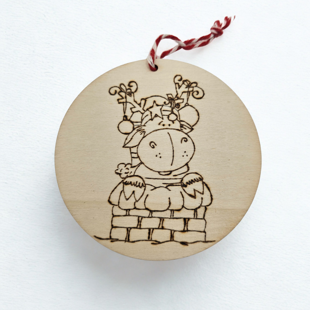 Palla di Natale pirografata “La Renna Felice” | Incisi a Fuoco