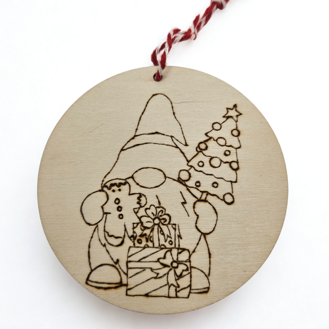 Palla di Natale pirografata “Lo Gnomo dei Regali” | Incisi a Fuoco