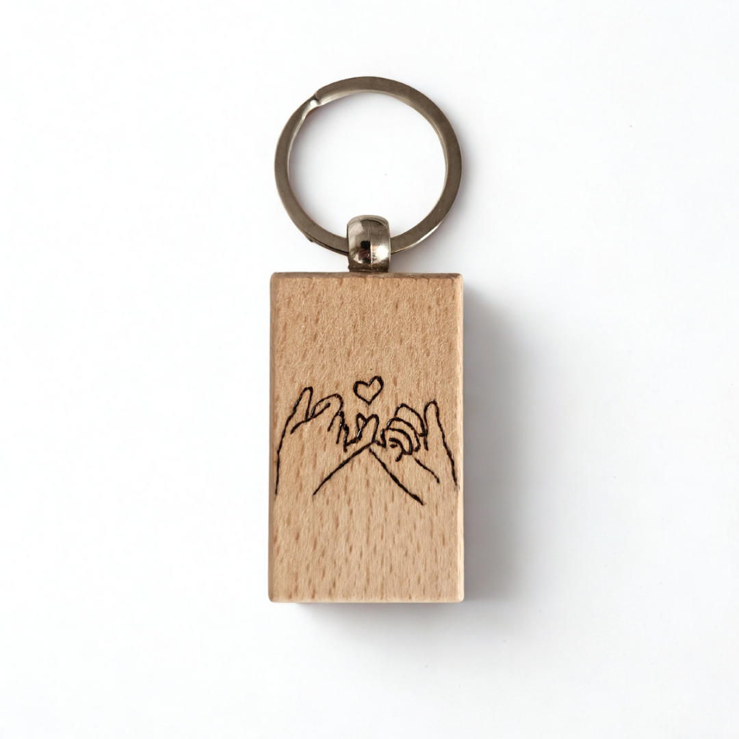 Portachiave in legno pirografato “Mani con cuore” | Incisi a Fuoco