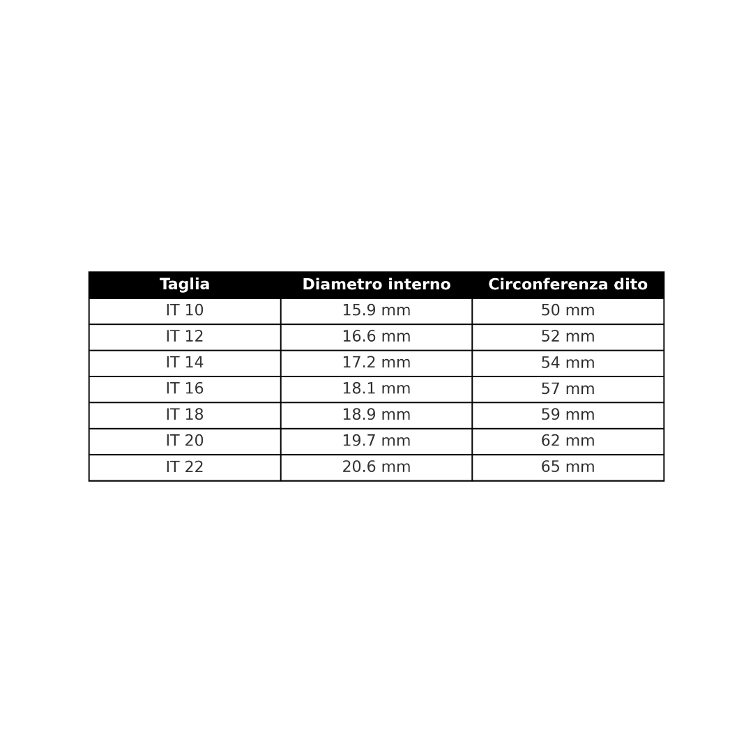 Se vuoi che l’anello calzi più “aderente”, considera che la misura scelta può essere stretta di ~0,5 mm.